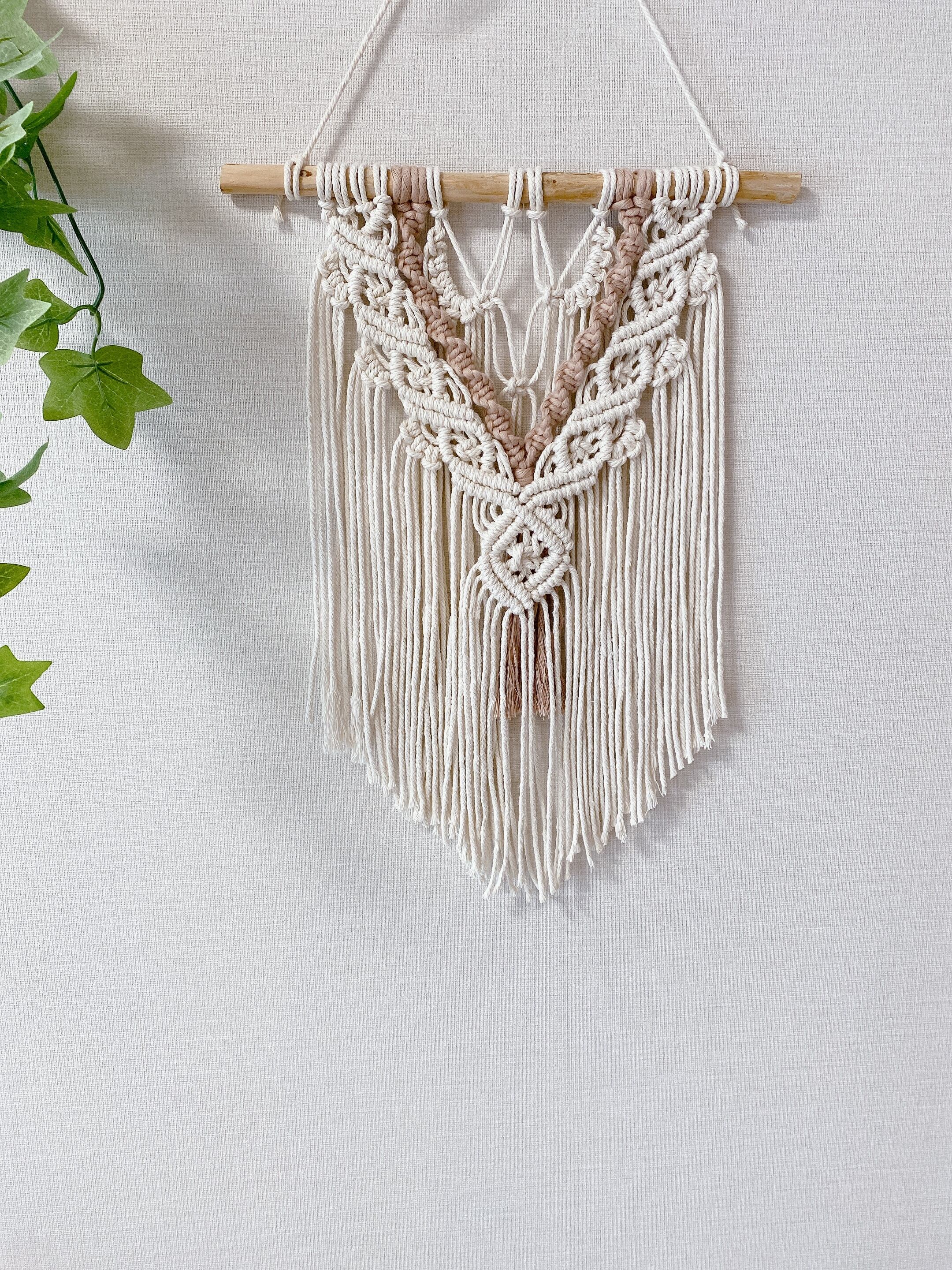 ピンクベージュを差し色にしたマクラメタペストリーです。