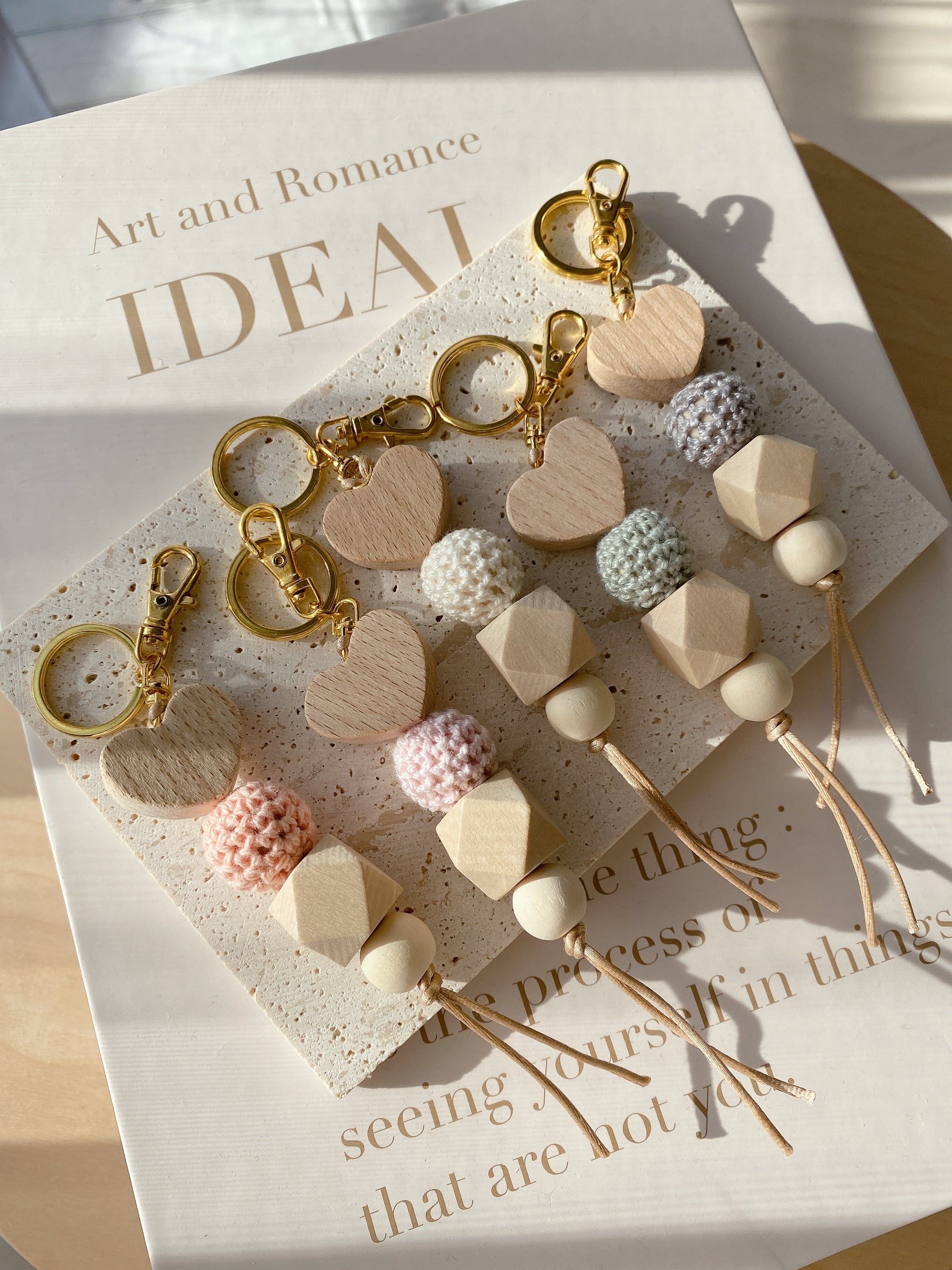 ˗ˏˋ ハートのウッドビーズキーホルダー ˎˊ˗